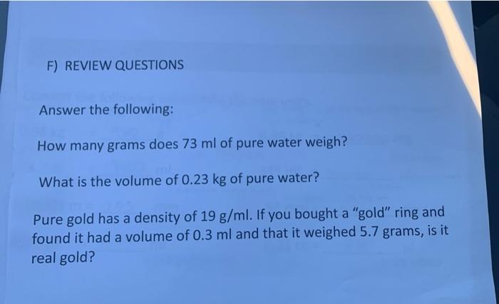 How Many Grams Does 73 Ml of Pure Water Weigh